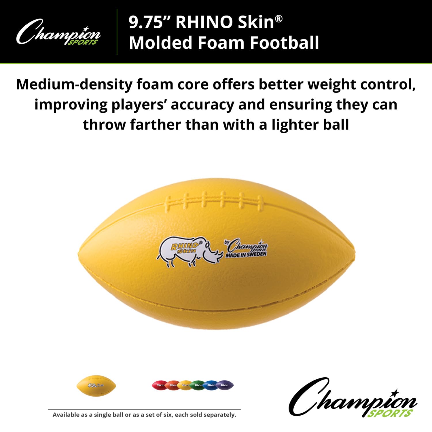 Champion Sports 10.5 Inch Rhino Skin Molded Foam Football, Yellowā