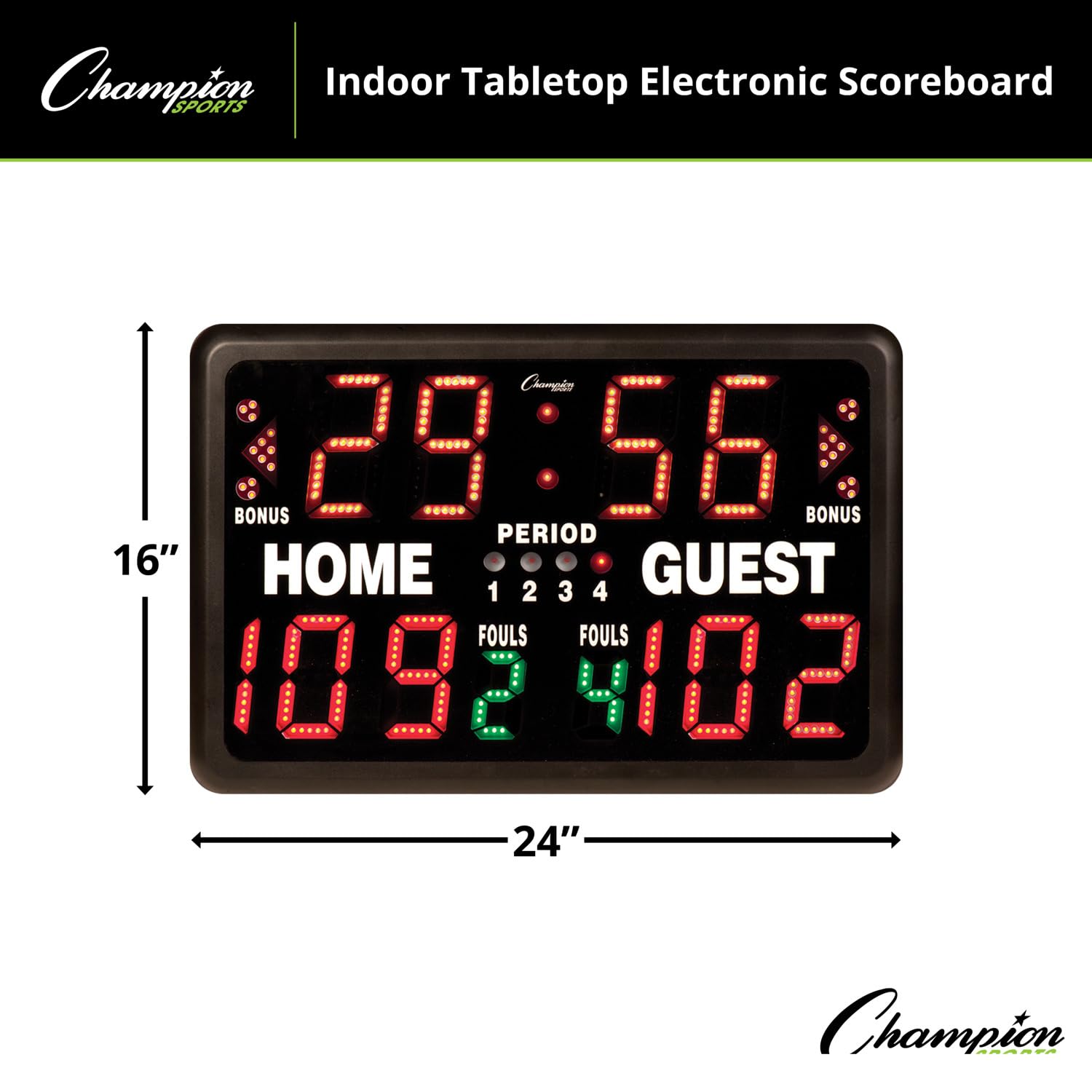 Champion Sports Electronic Scoreboard, Multi-Sport Tabletop Indoor, 24" L x 16" H x 10" D, Black, (Model: T90)