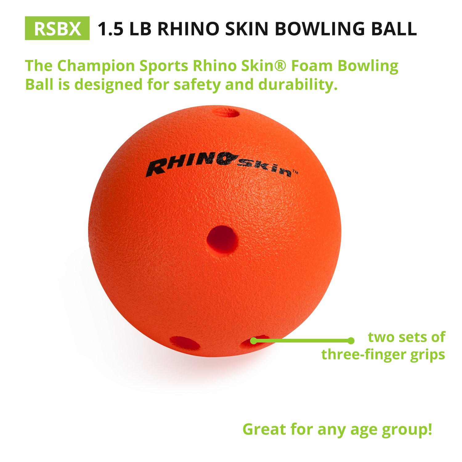 Champion Sports Foam Bowling Ball: Rhino Skin Soft - 1.5 Lb Bright Orange