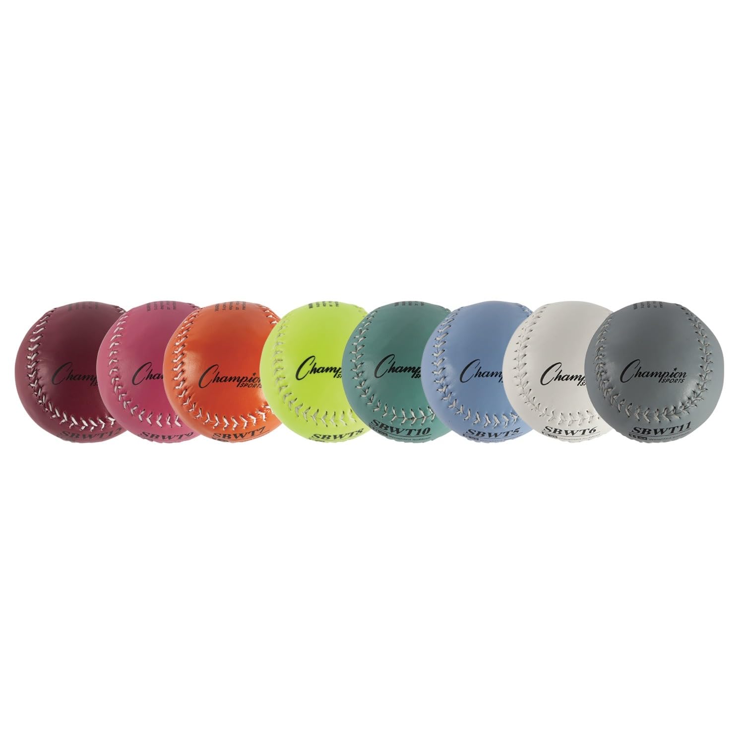 Champion Sports Weighted Training Softball Set - Rubber Cork Core - Leather Cover - Set of 8 Balls - Graduated Weights - 5 to 12 oz - 12 Inch Diameter